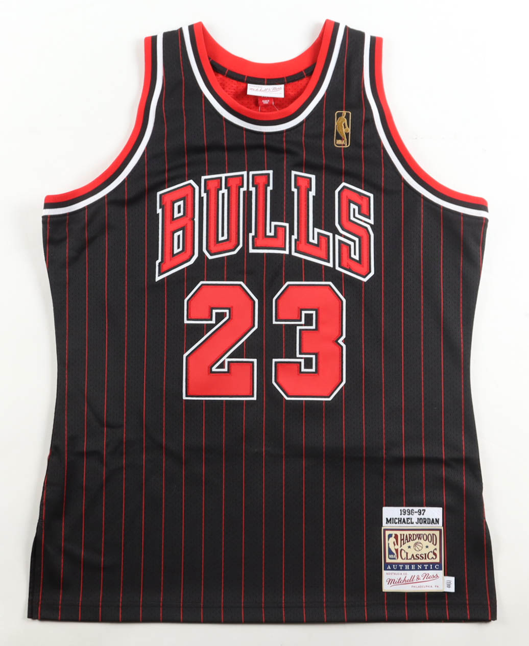 1997-98 Mitchell & Ness authentic on-court jersey with everything sewn on, size 44 (L). Hand-signed by Bulls legend, Michael Jordan!