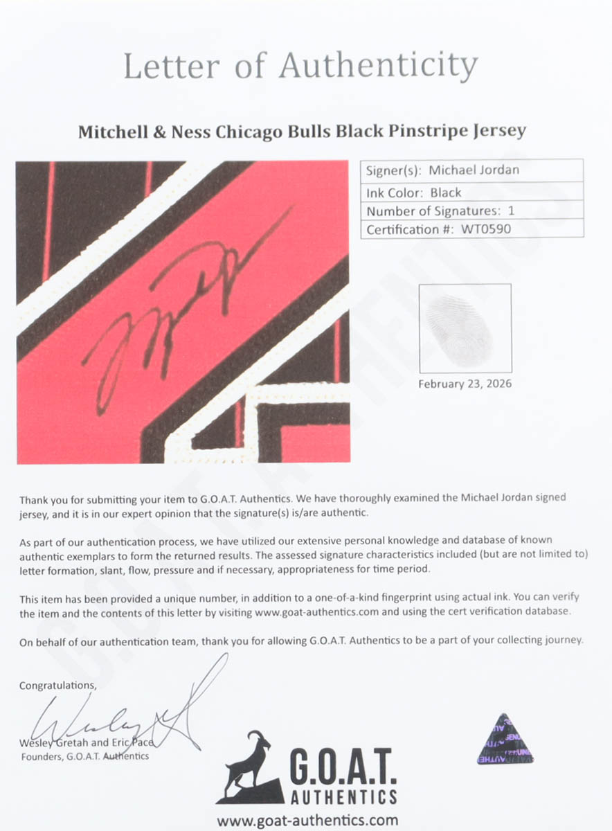This Michael Jordan autograph has been reviewed and approved by G.O.A.T. Authentics, who are widely recognized as the foremost expert in Michael Jordan autographs.