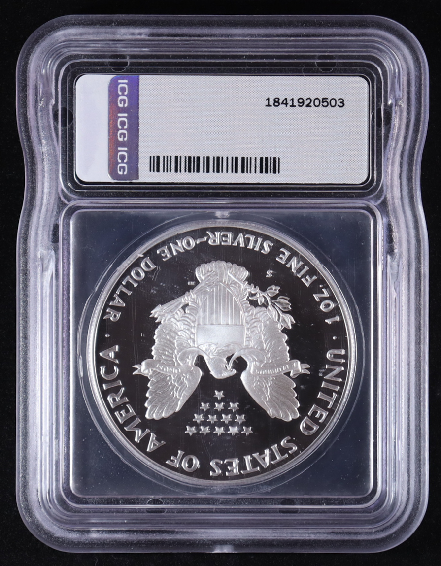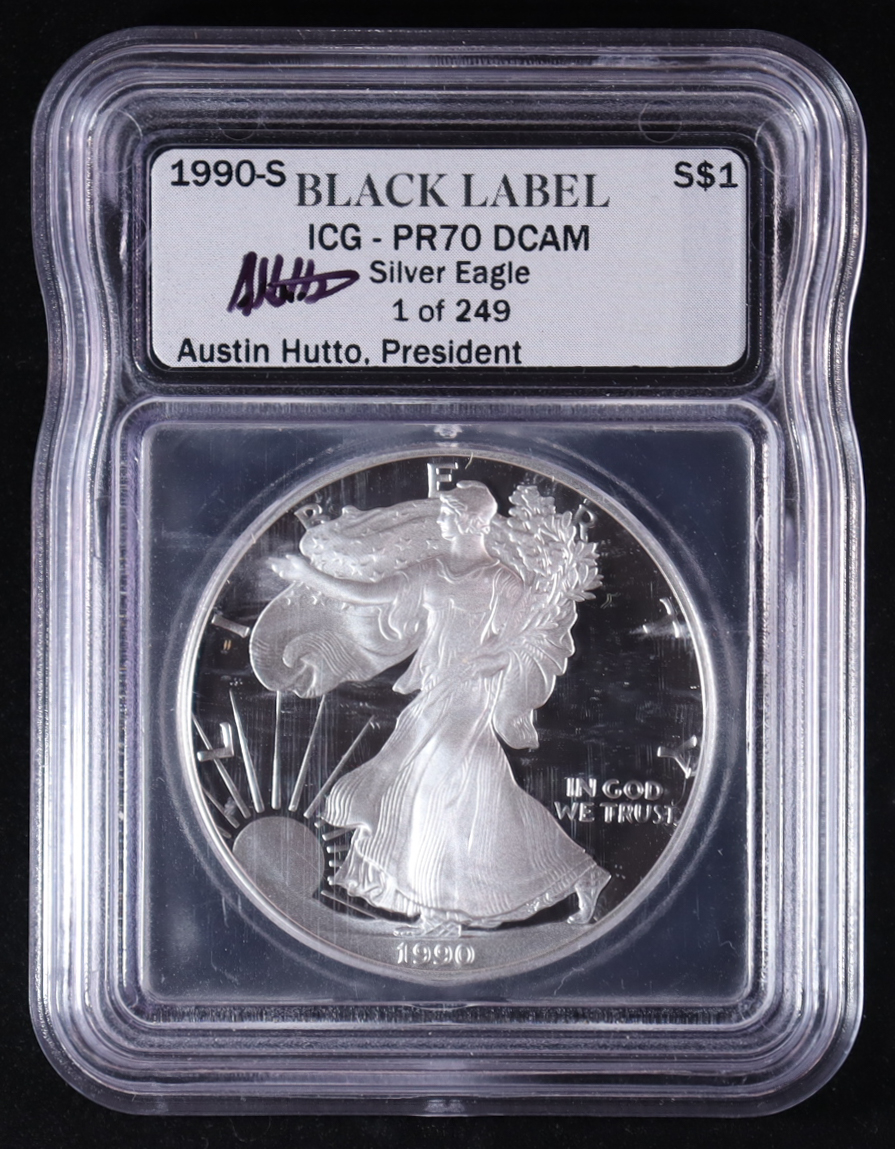 1990-S American Silver Eagle $1 Dollar Proof - Austin Hutto Signature Black Label #1/249 (ICG PR70 DCAM)