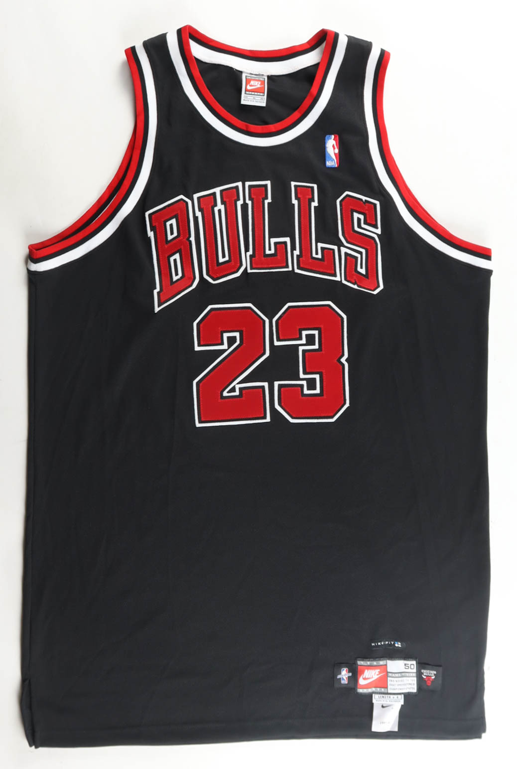 Nike authentic on-court jersey with everything sewn on, size 50 (L). Hand-signed by Bulls legend, Michael Jordan!