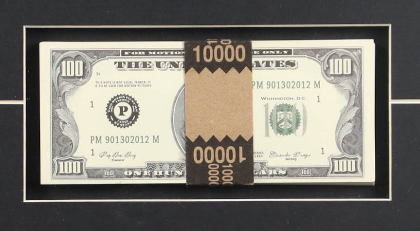 Custom frame measures approximately 17" x 26" in size. Display features movie poster print and replica cash stack. Please note, the display is unsigned.
