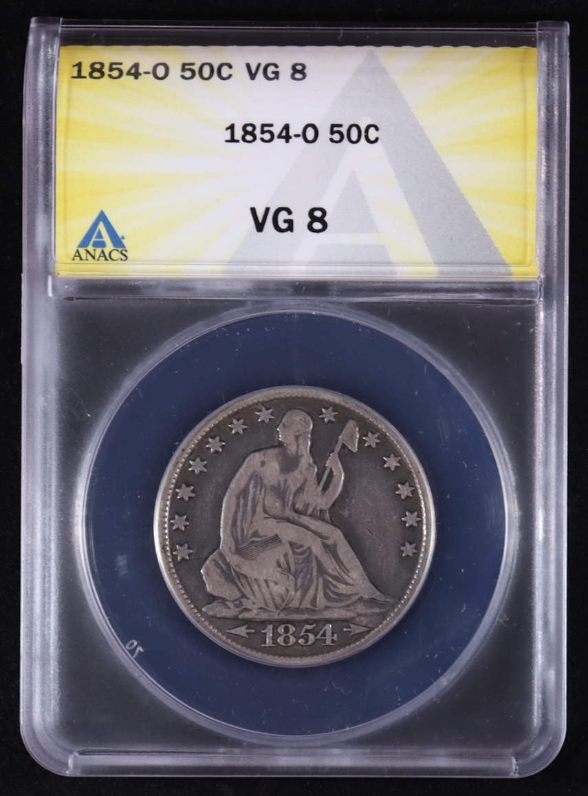 1854-O Seated Liberty 50C Silver Half Dollar (ANACS VG8)