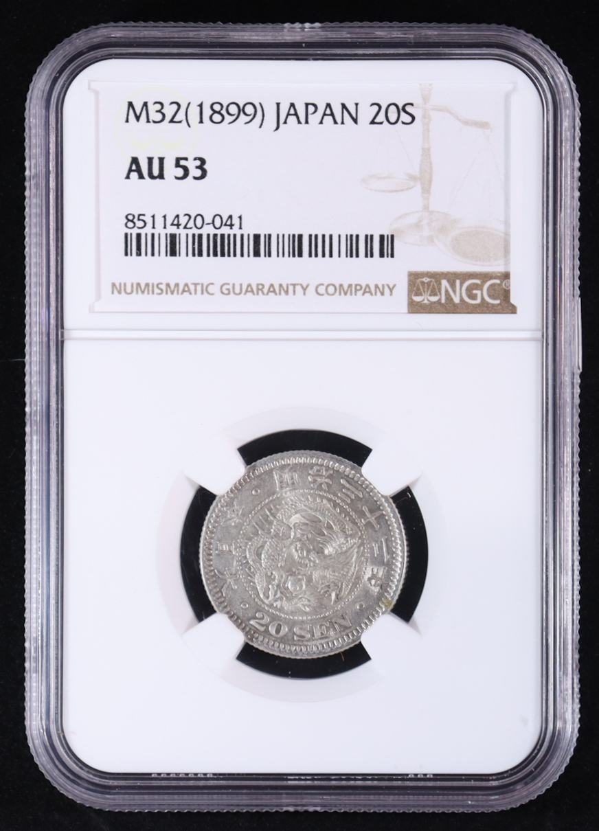 M32 (1899) Japan 20 Sen Silver Coin (NGC AU53)