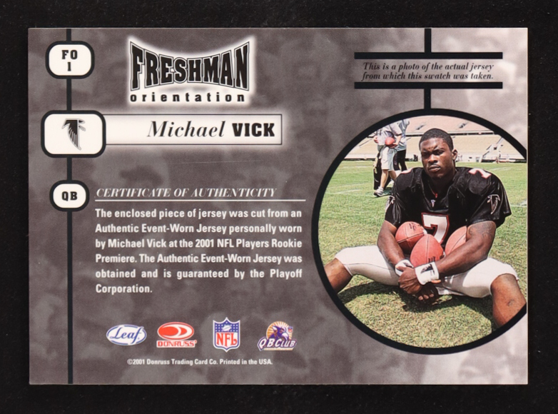 Michael Vick 2001 Leaf Rookies & Stars Freshman Orientation Event-Used Jsy #FO-1 RC