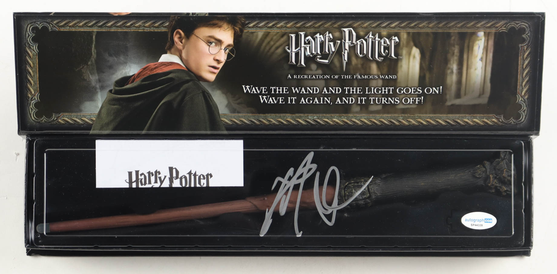 Toy wand has been hand-signed on the original packaging by Daniel Radcliffe. See photos for more details.