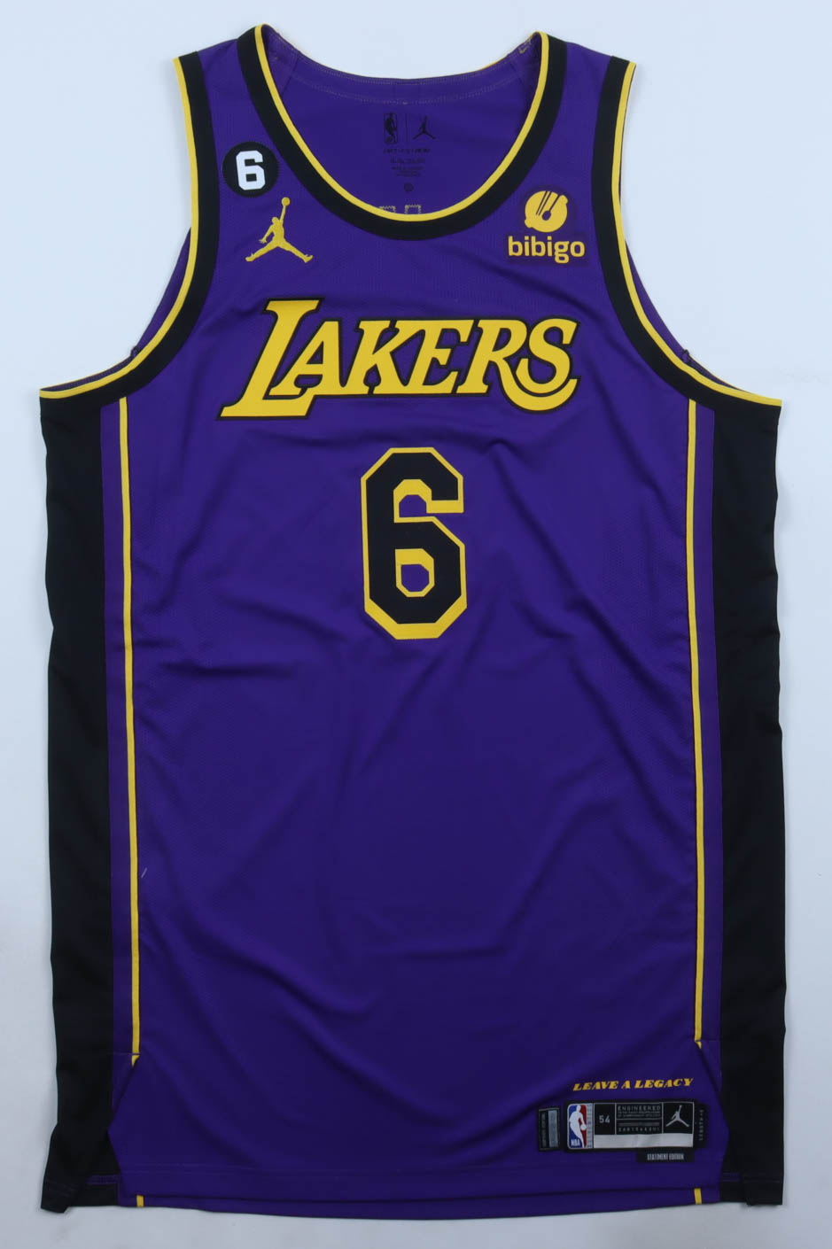 Authentic Jordan jersey, size 54 (Length +6). The jersey was game-used by LeBron James during the 2022-23 season. The jersey is unsigned and shows minimal wear (Los Angeles Lakers).