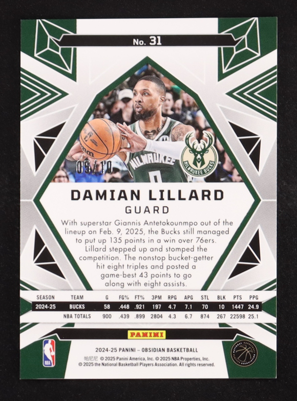 Damian Lillard 2024-25 Panini Obsidian Electric Etch Gold Flood #31 #05/10