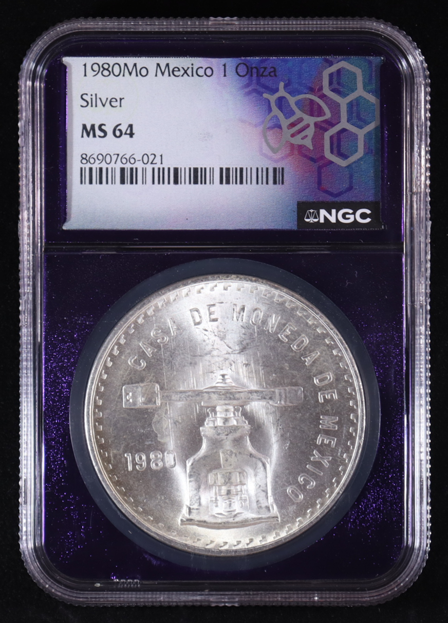 1980-Mo Mexico 1 Onza, 1oz. Silver Coin (NGC MS64)