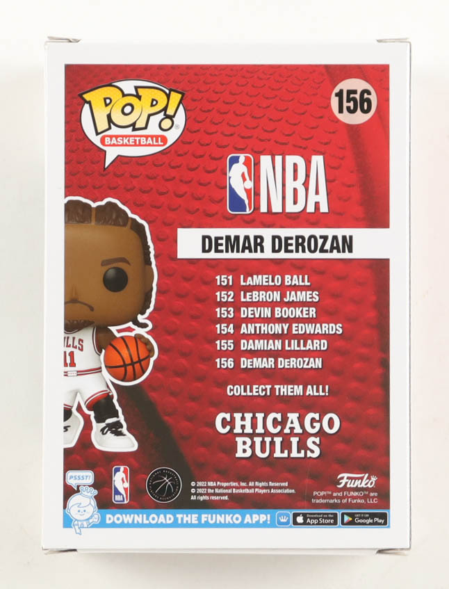 Vinyl figure measures approximately 4" tall and has been hand-signed on the packaging by DeMar DeRozan (Chicago Bulls).