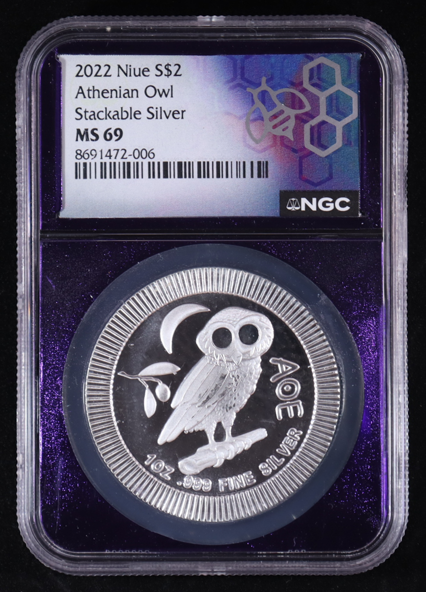 2022 Niue $2 Athenian Owl 1oz .999 Fine Silver Coin (NGC MS69)