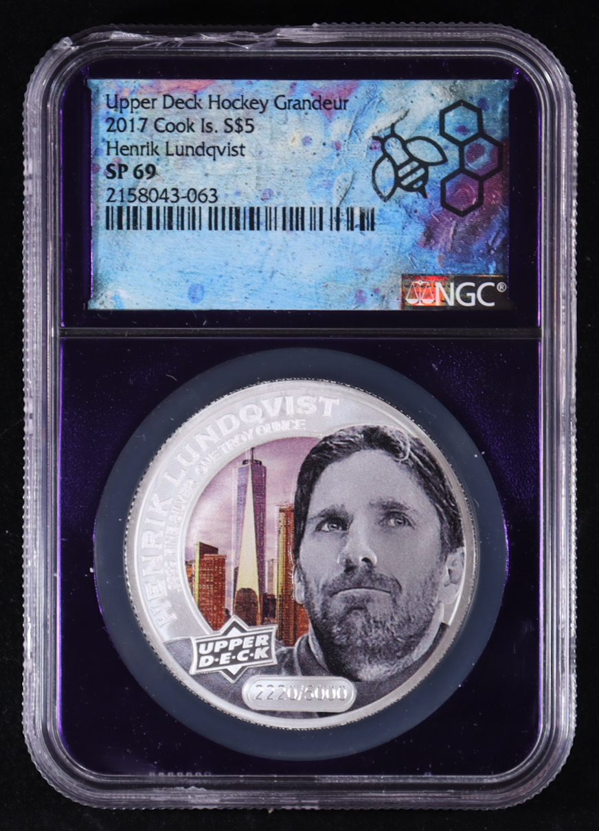 2017 Cook Islands $5 Upper Deck NHL Hockey Grandeur, Henrik Lundqvist - 1oz .9999 Fine Silver Coin #2220/5000 (NGC SP69)