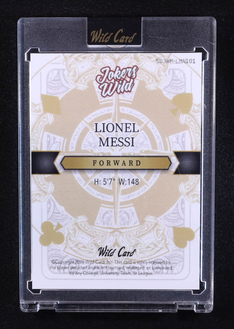 Lionel Messi 2025 Wild Card Jokers Wild Shimmer Black #SDJWMLMN101 #1/1
