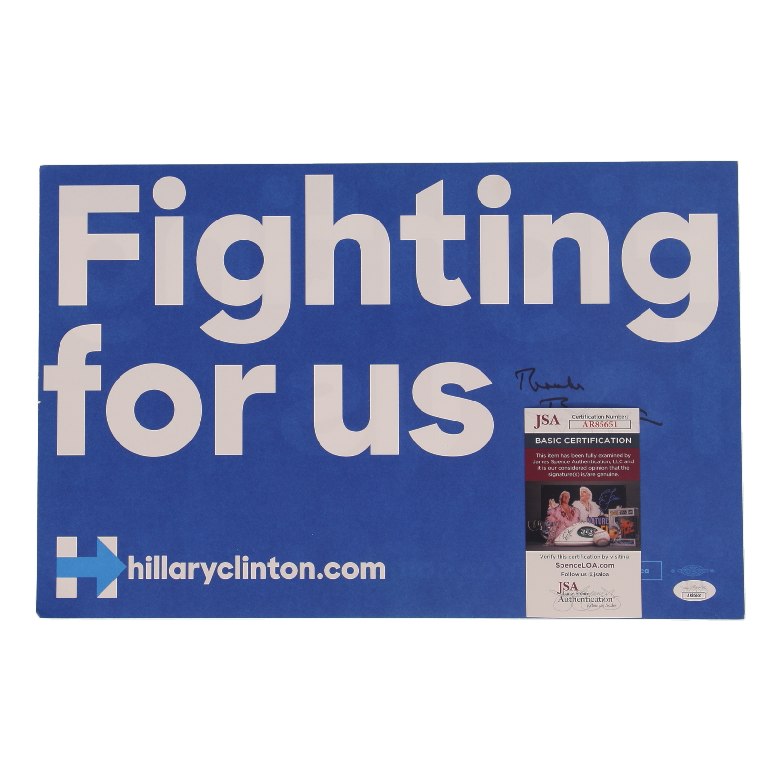 Bill Clinton Signed 11x17 Hillary Clinton Campaign Sign Inscribed "Thanks" (JSA)