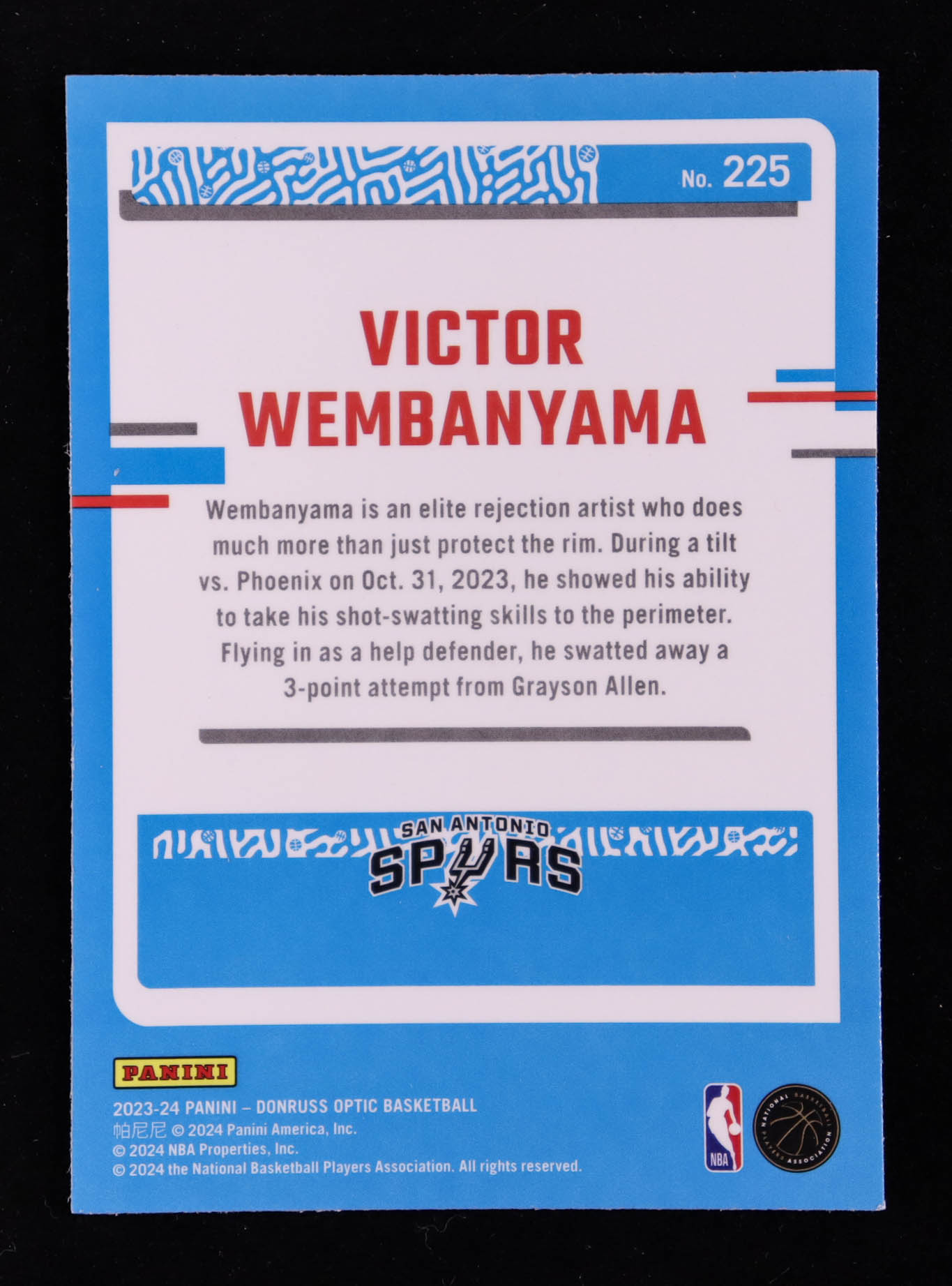 Victor Wembanyama 2023-24 Donruss Optic #225 RR RC
