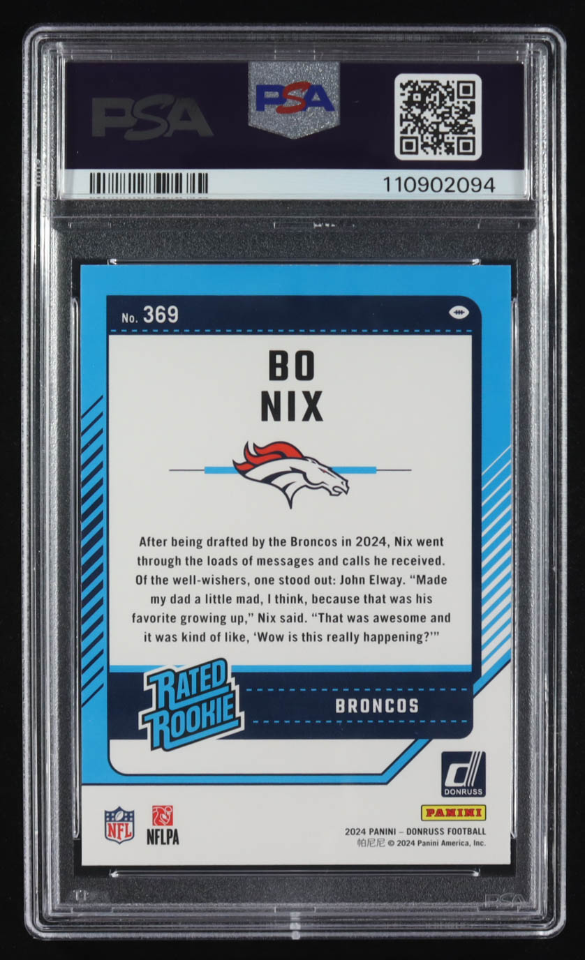 Bo Nix 2024 Panini Donruss Rated Rookie #369 RC (PSA 9)