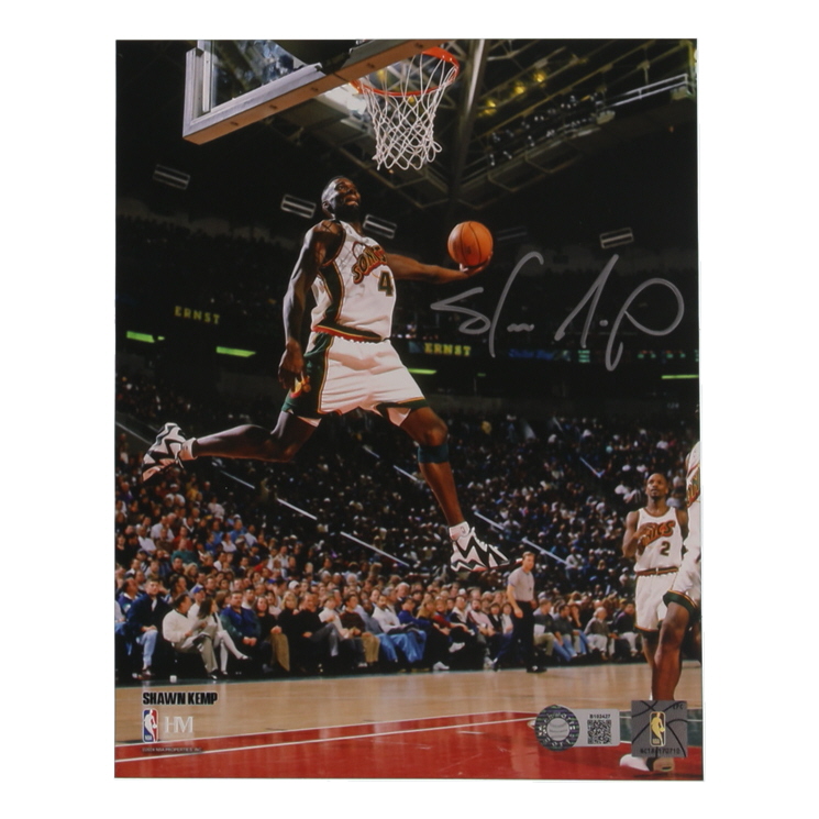 Photo measures 8" x 10" and has been hand-signed by Shawn Kemp (Seattle SuperSonics).