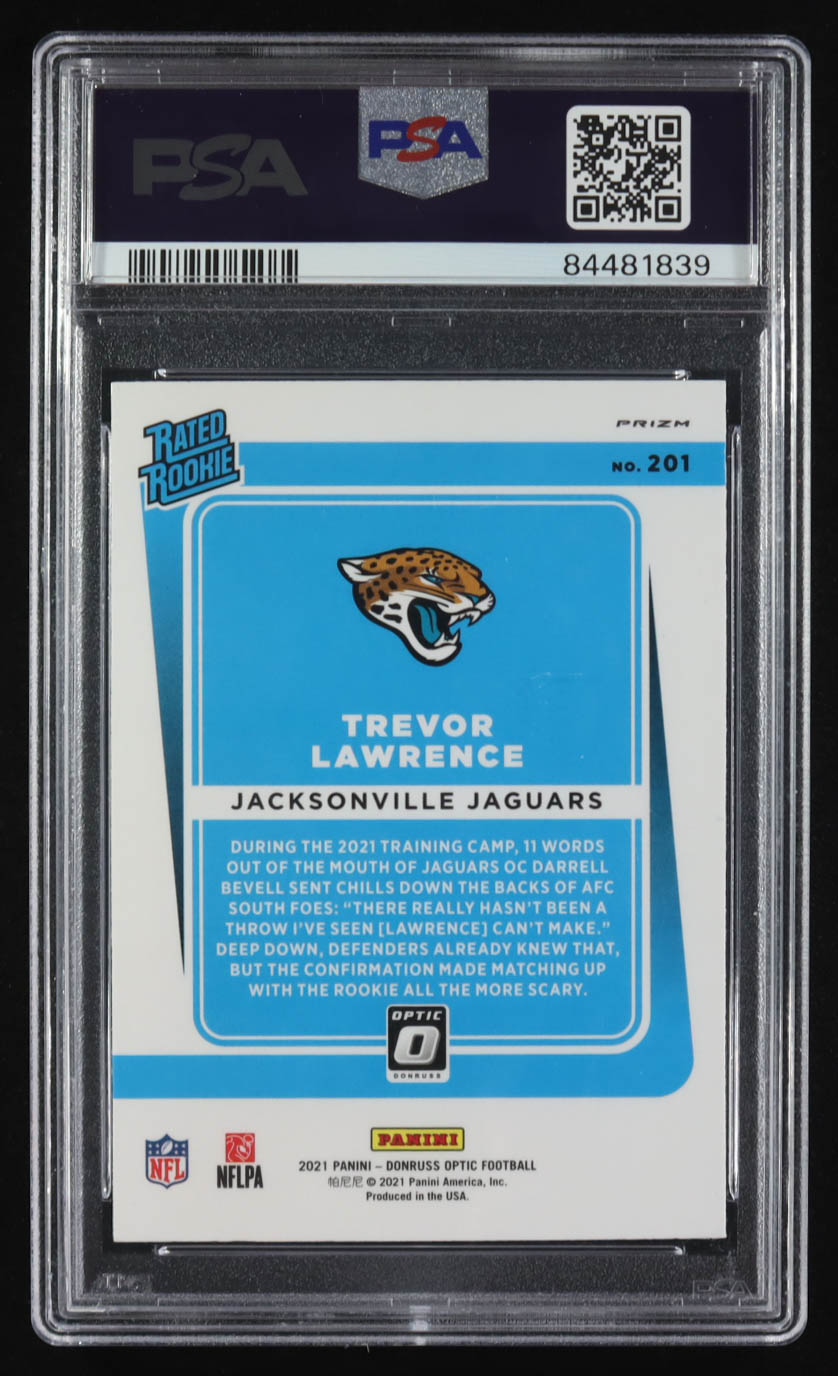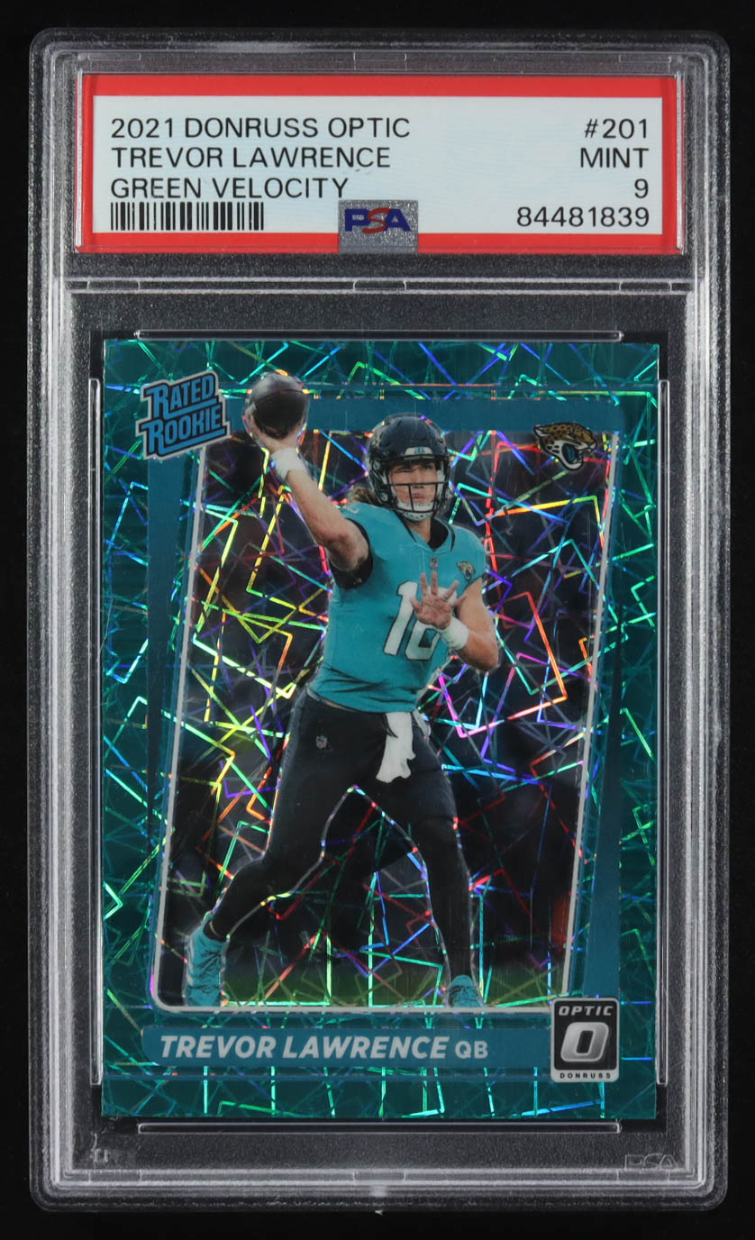 Trevor Lawrence 2021 Panini Donruss Optic Green Velocity Rated Rookie #201 RC (PSA 9)
