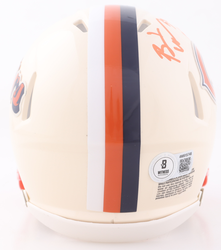 Riddell Chicago Bears Retro Alternate Speed mini helmet. Hand-signed and inscribed by Brian Urlacher (HOF).