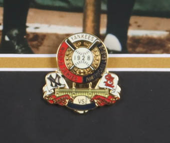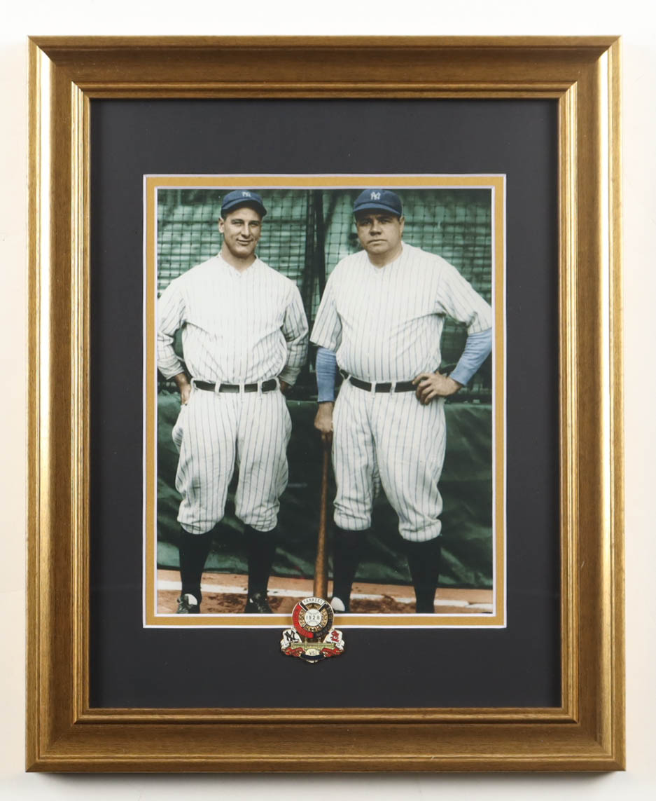 Babe Ruth & Lou Gehrig Yankees Custom Framed Photo Display with Official 1928 World Series Pin