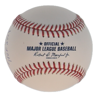 Rawlings Official Major League Hall of Fame Logo Baseball. Hand-signed and inscribed by Jim Rice (Boston Red Sox, HOF). Please note, there are minor stains throughout the baseball.