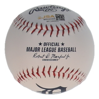Rawlings Official Major League Detroit Tigers Logo Baseball. Hand-signed by Cecil Fielder. Please note, there are stains throughout the baseball.