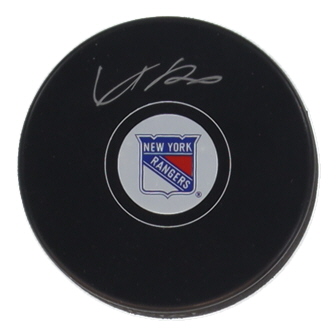 New York Rangers Logo Hockey Puck. Hand-signed by Adam Fox.