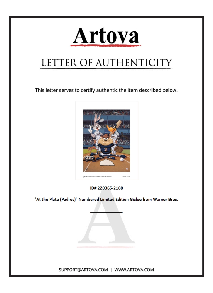 Warner Bros. "At the Plate (Padres)" LE 16x20 Giclee on Paper (Artova)
