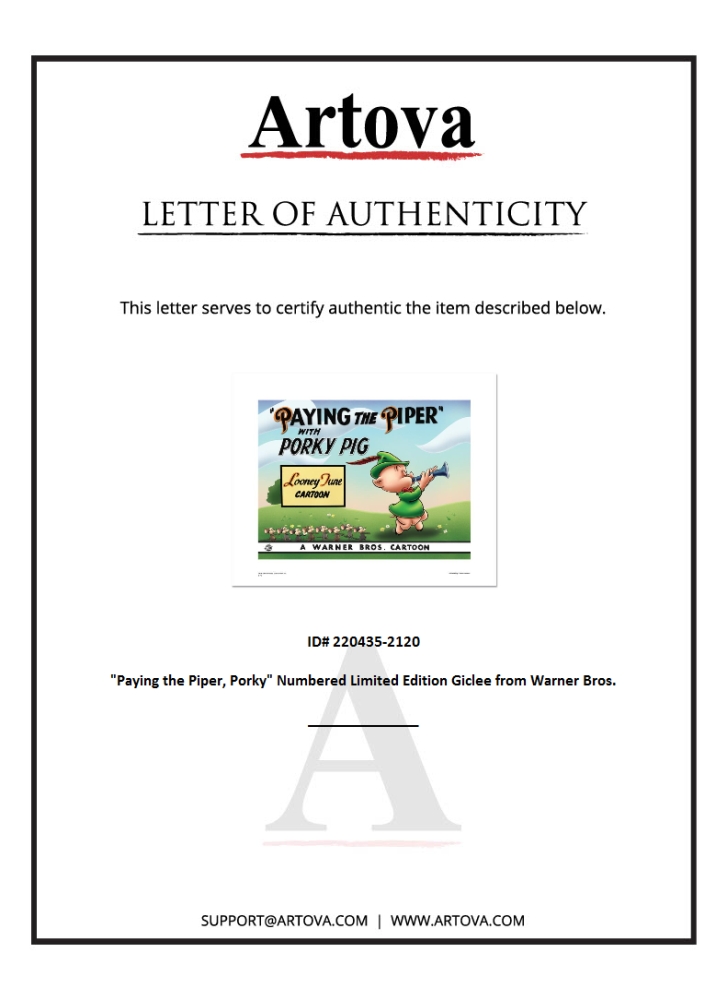Warner Bros. "Paying the Piper - Porky" LE 20x16 Giclee on Paper (Artova)