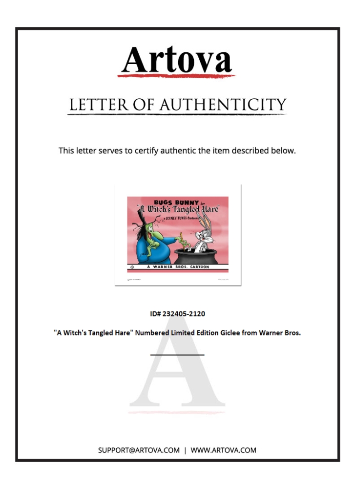 Warner Bros. "A Witch's Tangled Hare" LE 20x16 Giclee on Paper (Artova)