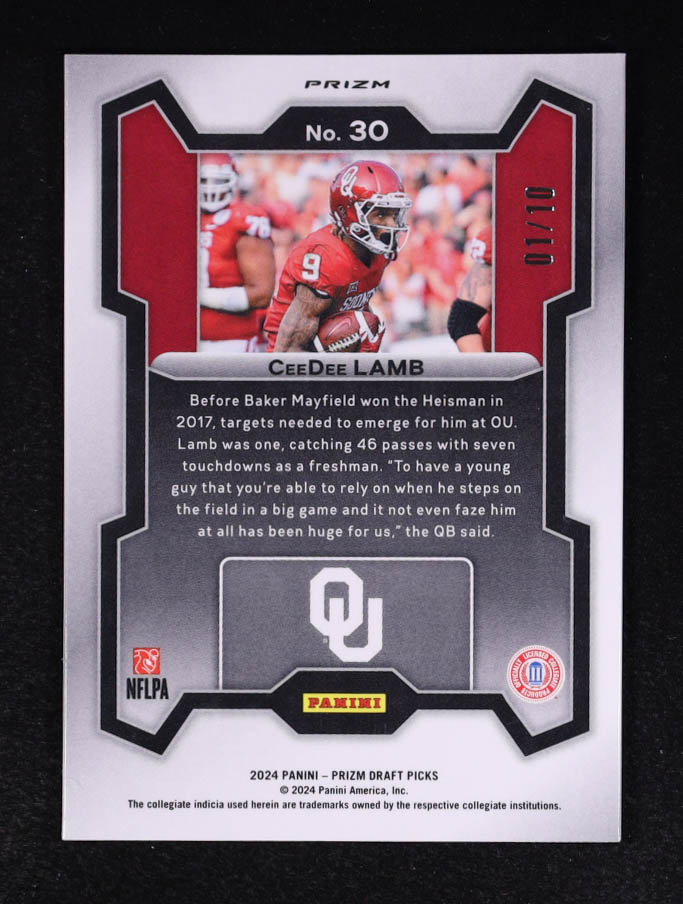 CeeDee Lamb 2024 Panini Prizm Draft Picks Prizms Gold #30 #01/10
