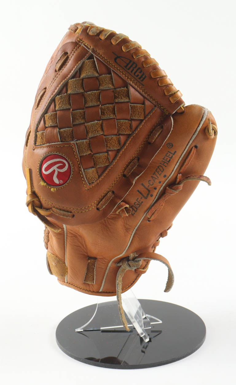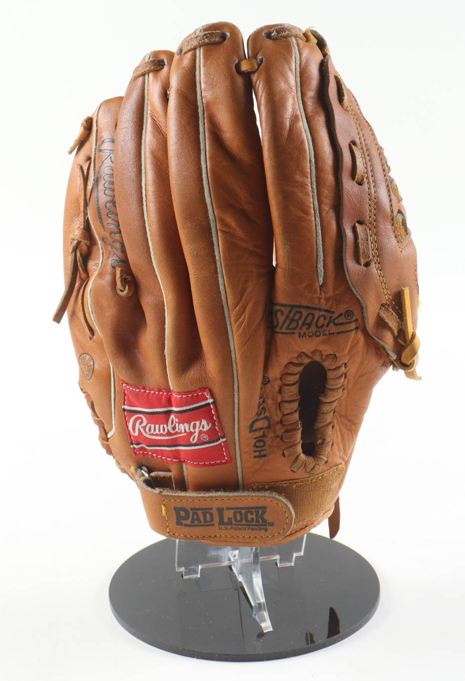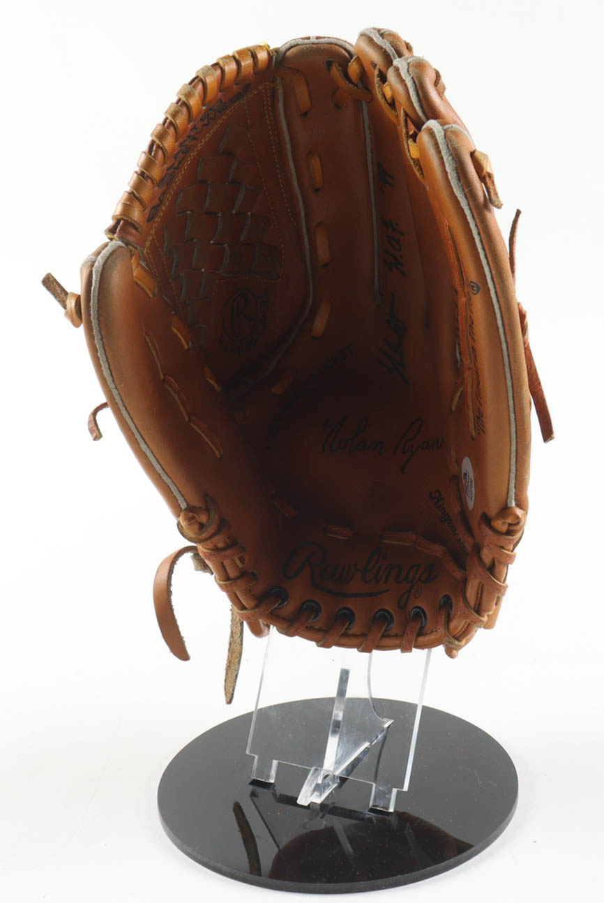 Rawlings Baseball glove has been hand-signed and inscribed by Nolan Ryan (Houston Astros, HOF). Display stand included as shown.
