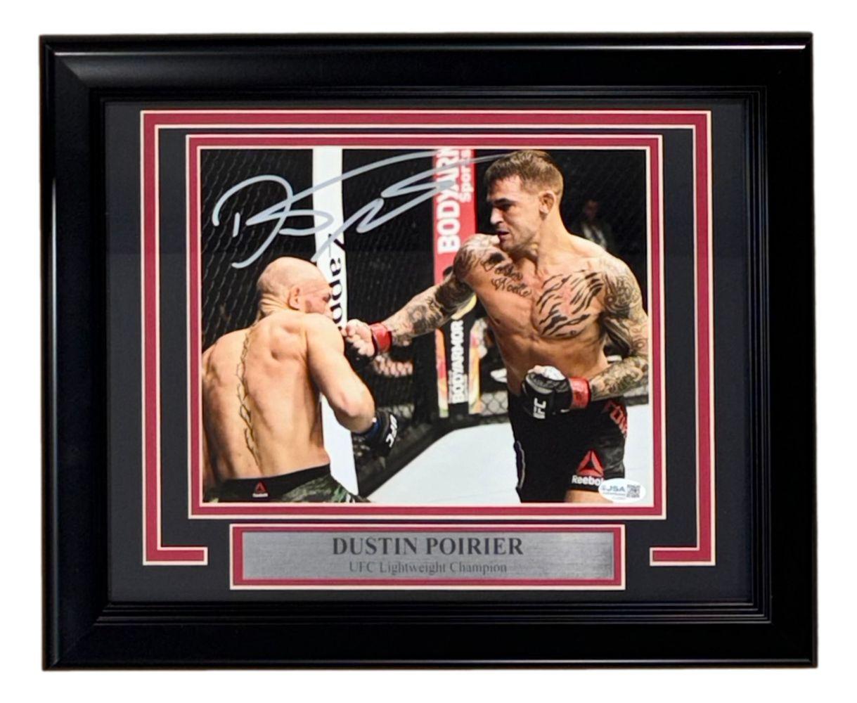 Custom frame measures 11” x 14” in size and features a photo that has been hand-signed by Dustin Poirier.