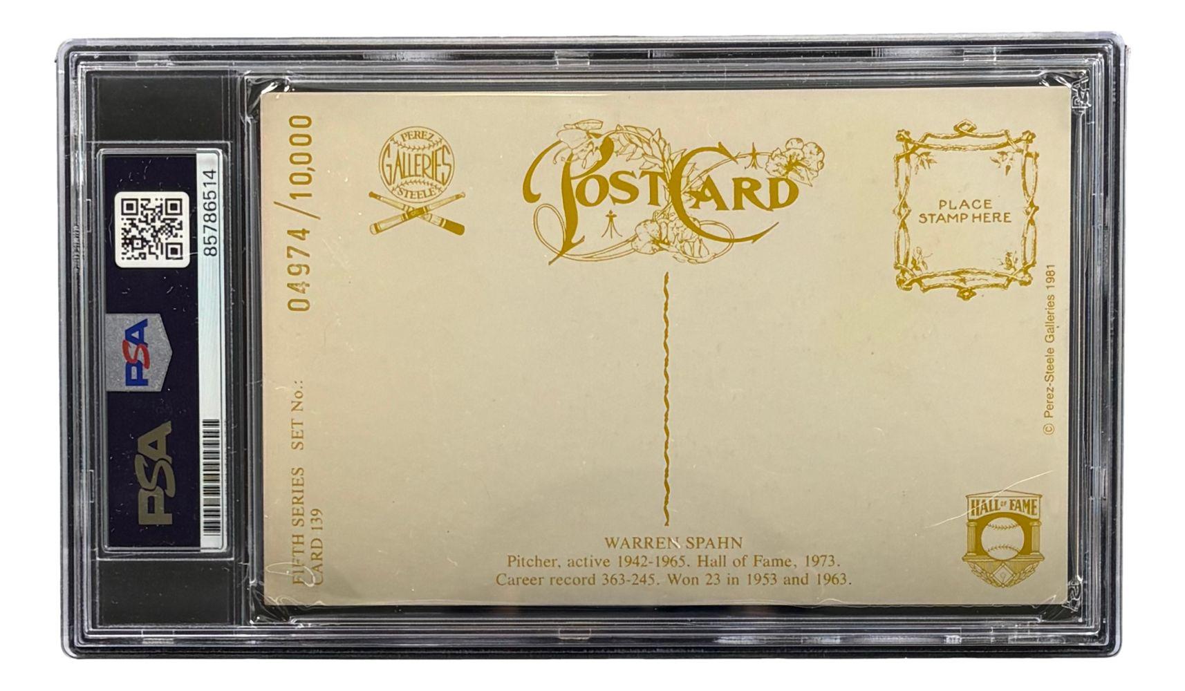 Warren Spahn Signed LE 1981 Perez-Steele Hall of Fame Postcard #139 (PSA)