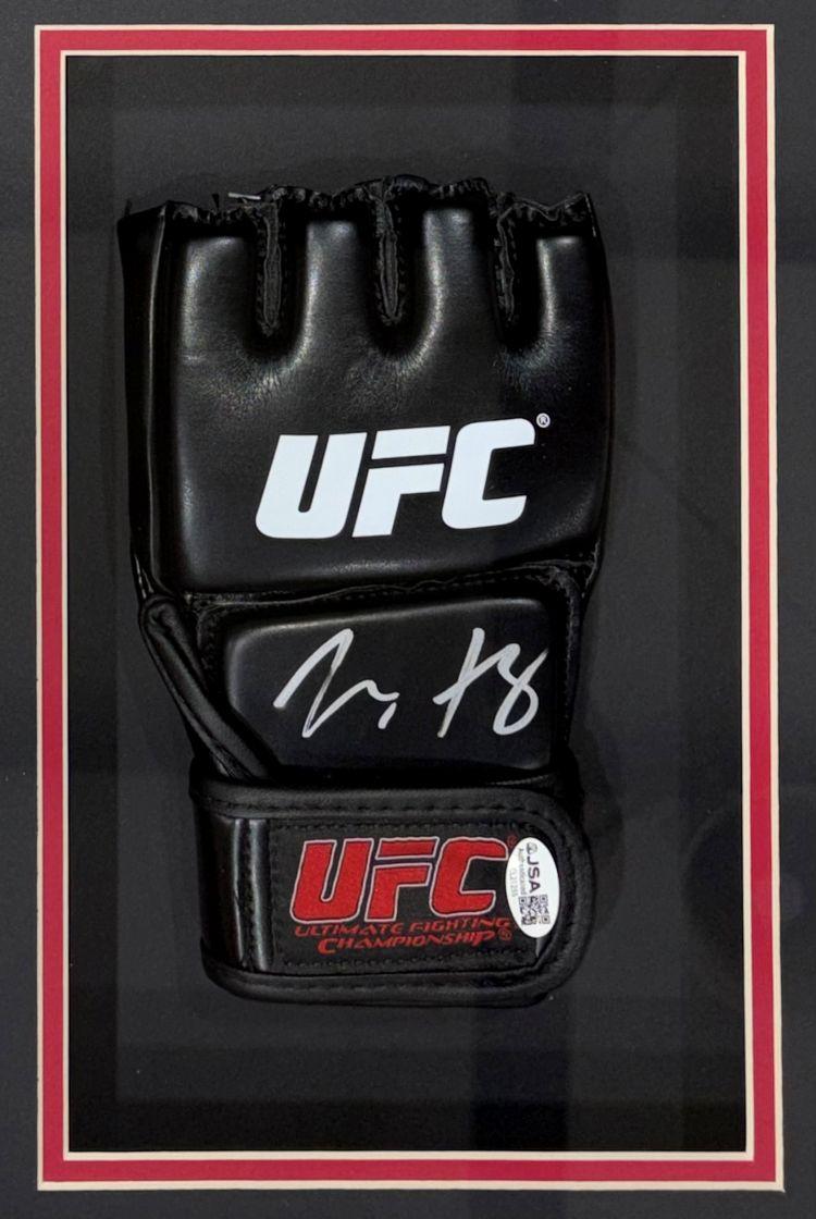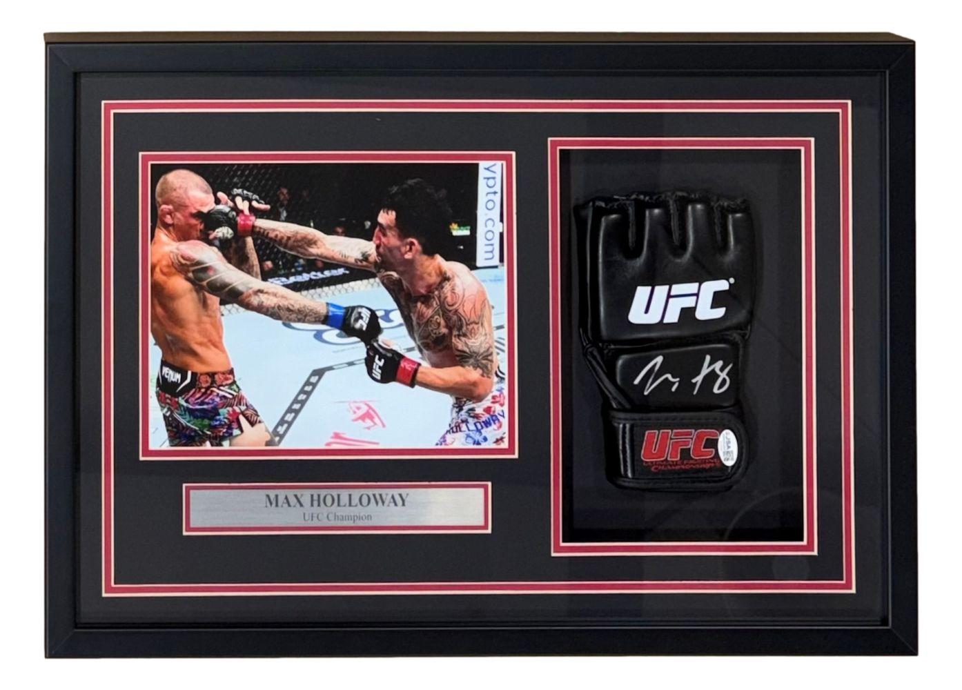 Custom frame measures 16” x 22” in size and features a glove that has been hand-signed by Max Holloway.