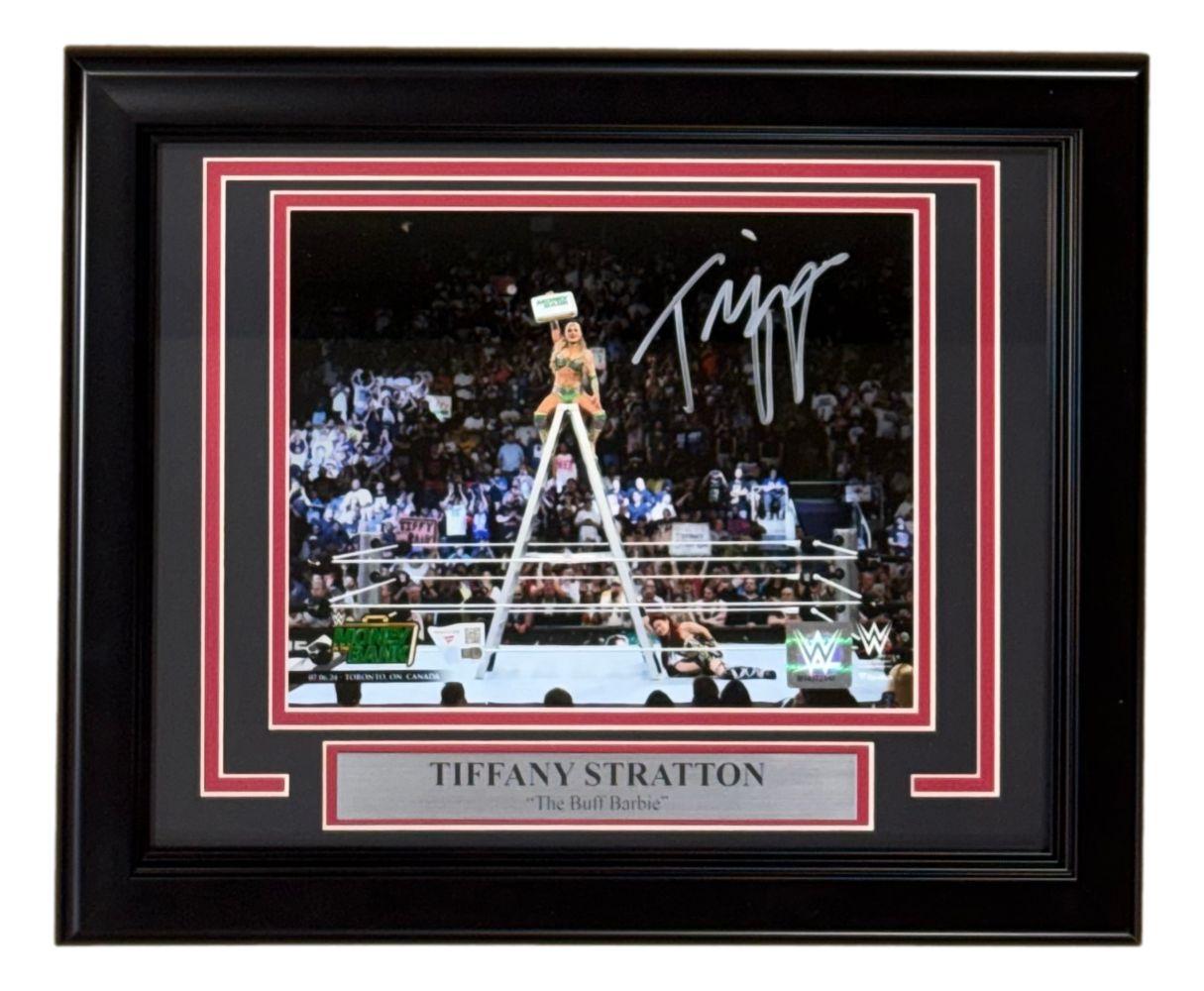 Custom frame measures 11” x 14” in size and features a photo that has been hand-signed by Tiffany Stratton.