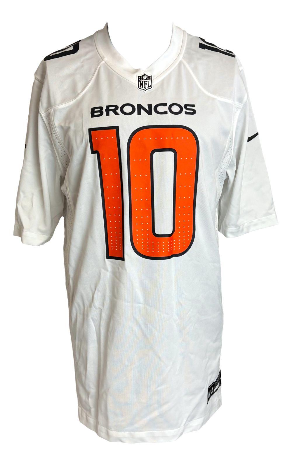 Nike jersey with everything pressed on, size L. Hand-signed by Bo Nix (Denver Broncos).