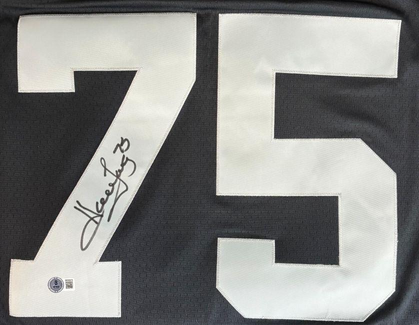 Mitchell & Ness jersey with everything sewn on, size M. Hand-signed by Howie Long (Oakland Raiders, HOF).