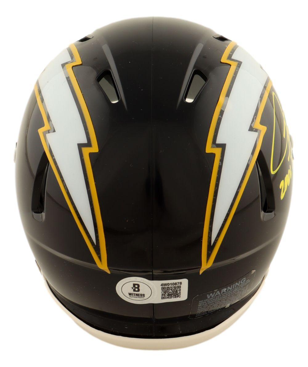 Riddell San Diego Chargers throwback alternate speed mini helmet has been hand-signed and inscribed by LaDainian Tomlinson (HOF).