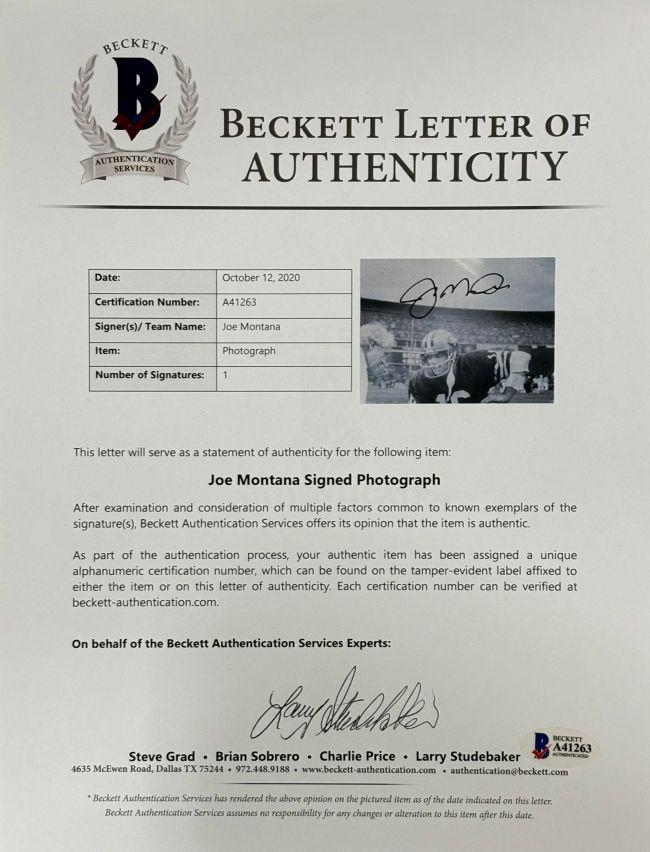 Custom frame measures 22” x 27” in size and features a photo that has been hand-signed by Joe Montana (San Francisco 49ers, HOF).