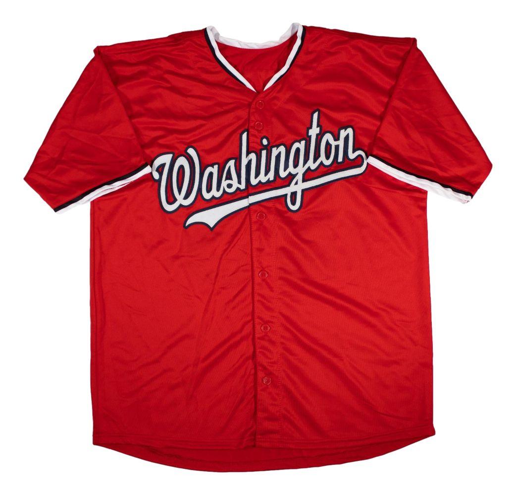 Custom jersey with everything sewn on, size XL. Hand-signed by James Wood.
