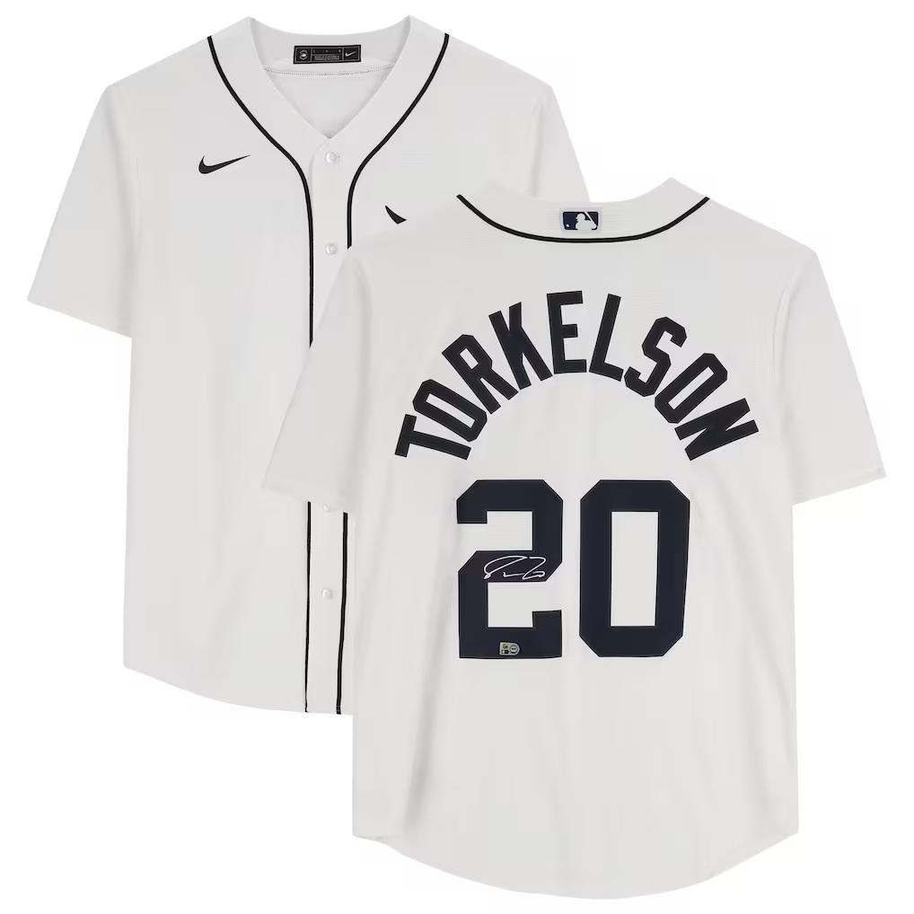 Nike jersey with everything pressed on, size L. Hand-signed by Spencer Torkelson (Detroit Tigers).