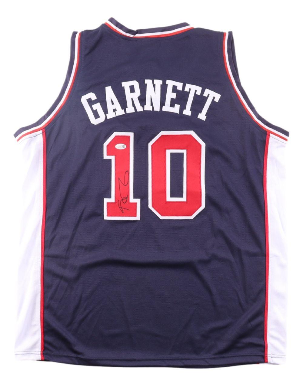 Custom jersey with everything sewn on, size XL. Hand-signed by Kevin Garnett (HOF).