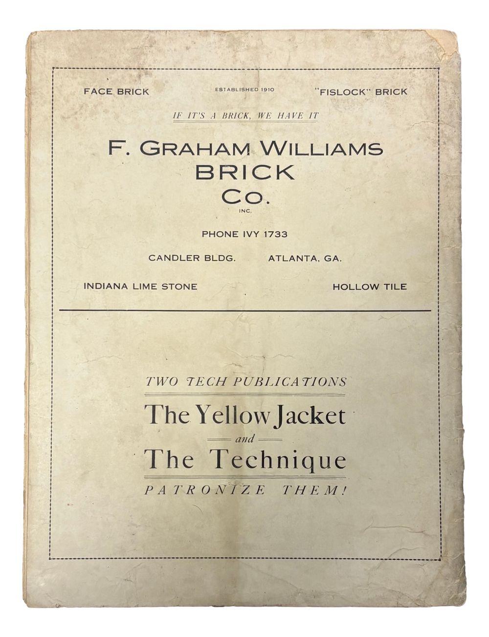 1922 Georgia Tech Yellow Jackets college football yearbook. This is an original yearbook and is fair condition. Program contains dog-eared pages, aging discoloration and binding deterioration.