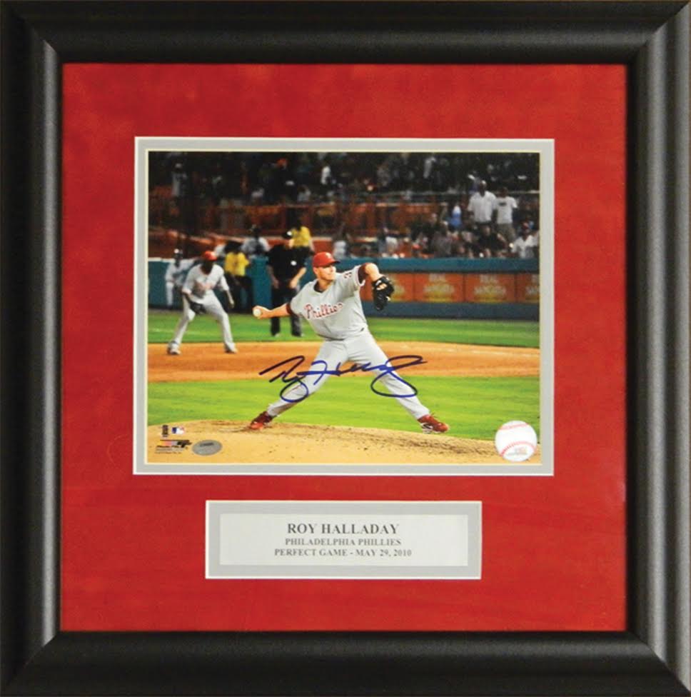 Roy Halladay Signed Phillies "Perfect Game" 16x17 Custom Framed Photo Display (Schwartz COA)