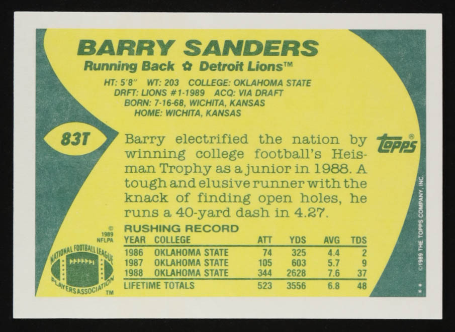 Barry Sanders 1989 Topps Traded #83T RC