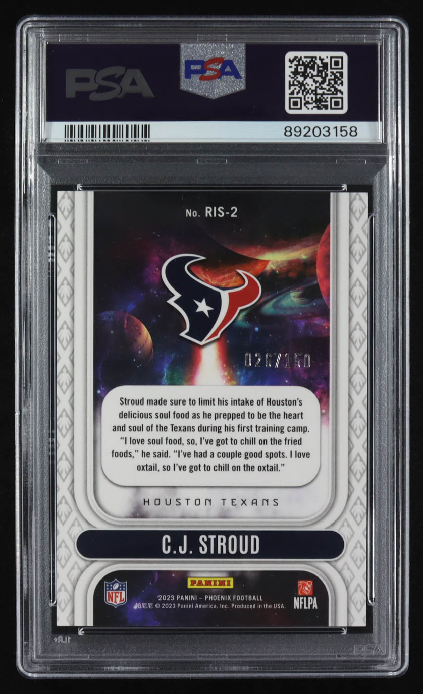 CJ Stroud 2023 Panini Phoenix Rookie Rising Teal #RIS-2 RC #026/150 (PSA 10)