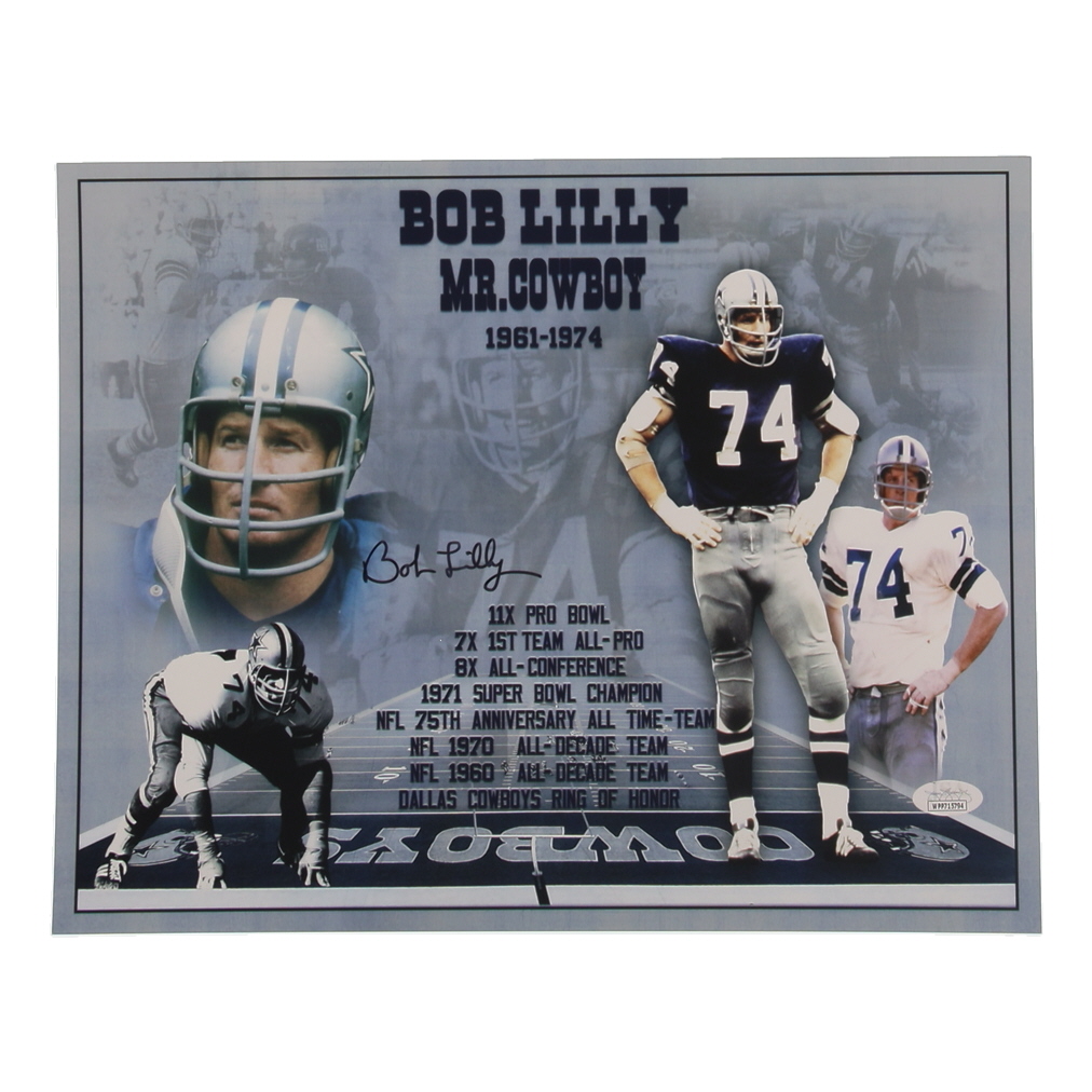 Photo measures 11" x 14" in size. Hand-signed by Bob Lilly (Dallas Cowboys, HOF).