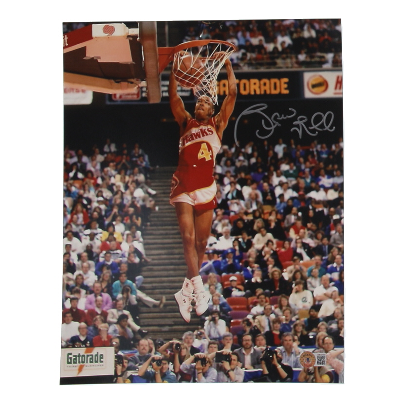 Photo measures 11" x 14" in size and has been hand-signed by Spud Webb (Atlanta Hawks).