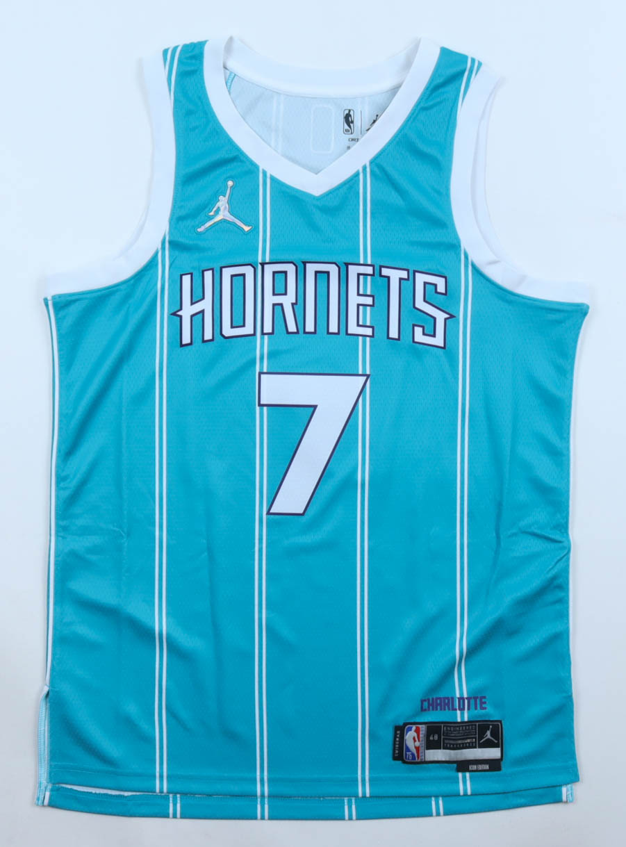 Jordan jersey with everything pressed on, size 48. Hand-signed by Kon Knueppel (Charlotte Hornets).