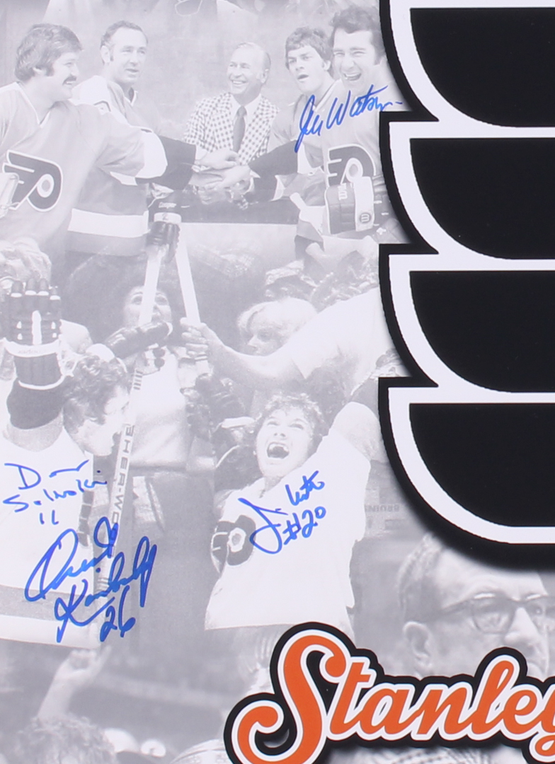 Flyers 1974-75 Stanley Cup Champions 16x20 Photo Signed By (8) Including Orest Kindrachuk, Jimmy Watson, Rick MacLeish, Bill Clement (MAB Hologram)